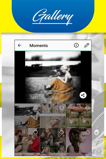 Gallery Automatically organize all of your photos and videos according to your events, date, time, and location into album.