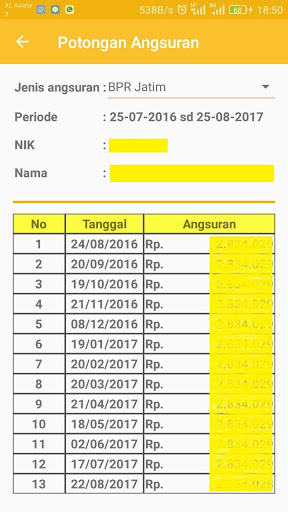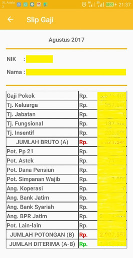 Applicazione per vedere slittari salariali e rate del dipendente dei dipendenti Wijaya Kusuma Surabaya.I dettagli degli slitte e rate salariali possono essere visti in base a un certo periodo di tempo.Per rate possono anche essere visti in base al tipo di rata.