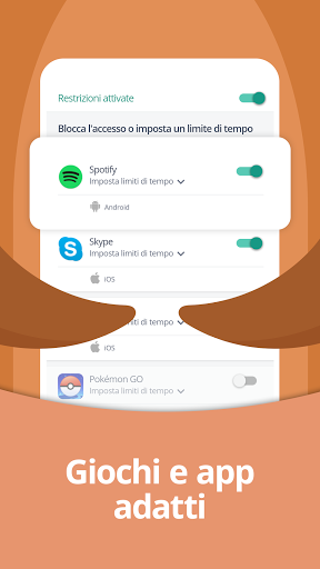 Inizia scaricando l'app di controllo parentale sul tuo dispositivo. Poi scarica l'app Ragazzi associata sul dispositivo di tuo figlio. Insieme, queste due app ti consentono di gestire in maniera continuativa i tempi d'uso di tuo figlio su tutti i dispositivi mobili e tablet Android e iOS.