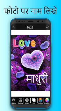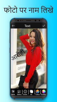 Photo Pe Naam Likhna - फोटो पे नाम लिखे app allows you to write Hindi on pictures. Write your own shayari, poetry, message, status etc on pictures and share them with your friends. This app has a full and easy to use Hindi keyboard to write romantic, quotes, dialogues, jokes or status on pictures.