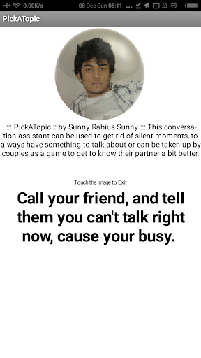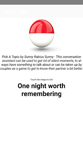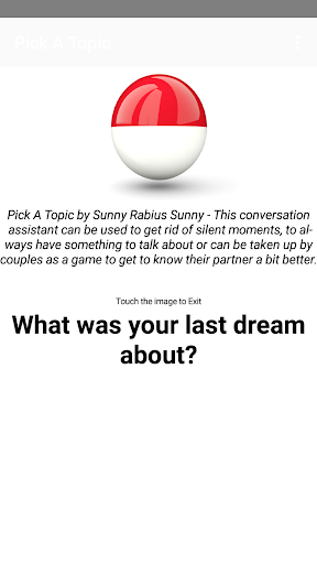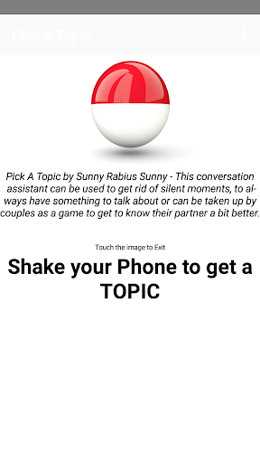Fuori tema?Annullarsi in una conversazione?Scuoti il tuo telefono per ottenere un argomento super interessante per cui parlare.Questo romperà sicuramente il silenzio imbarazzante.