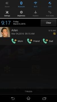 Swipe to pull down the notification bar from the top of your phone's screen and your last 4 call logs is there for you to quick call. This service monitors call log and updates notification bar with updated call log.