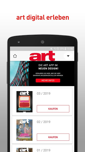 Eine Einzelausgabe erhalten Sie für 6,99 Euro! Oder abonnieren Sie art gleich für 1 Monat oder 1 Jahr – im Abo: 77,99.
