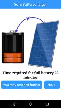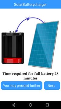 Solar Battery Charger the Fast battery charger is here for you to charge your mobile battery with sun rays. This solar battery charger will contains a solar panel which need to be activated and once it is activated your mobile battery will be charged in 30 minutes. This app can be used to prank your friends that you can charge your battery. This solar battery will show battery charging animation which helps to prank friends easily. In absence of sun light the solar battery charger animation will not work. Do rate this app and leave your