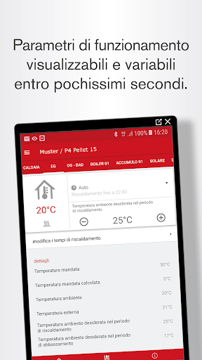 Tramite l´ App Fröling Connect può verificare e gestire la Sua caldaia Fröling in maniera confortabile in qualsiasi momento da qualsiasi posto. Entro pochissimi secondi si ottiene la supervisione della situazione attuale dell´impianto e si può variare i parametri importanti in maniera molto semplice e confortabile. inoltre è impostabile su quali stati di funzionamento ecc. vorrebbe venire informato (esempio: cassetto ceneri pieno, messaggi d´errore, guasti ecc.)