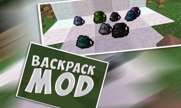Backpack mod for Minecraft PE allows you to have your trophies with you. Weapons and armor will always be in your backpack wherever you go. You have a unique opportunity to choose the color of the backpack, which will be in harmony with the skins that you use.