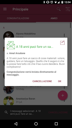 Per non dimenticare di inviare saluti di compleanno, abbiamo creato un sistema flessibile di promemoria. Puoi trovarlo nelle impostazioni dell'applicazione.