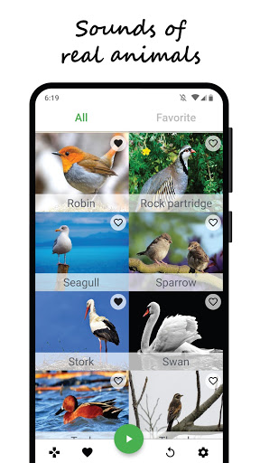 Riproduci e riconosci il suono degli uccelli della natura e goditi le immagini in HD, centinaia versi e suoni ti aspettano.