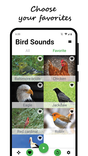 Puoi salvare i suoni degli uccelli che ti piacciono di più nella categoria preferita, in modo da trovare immediatamente quelli che ascolti di più.