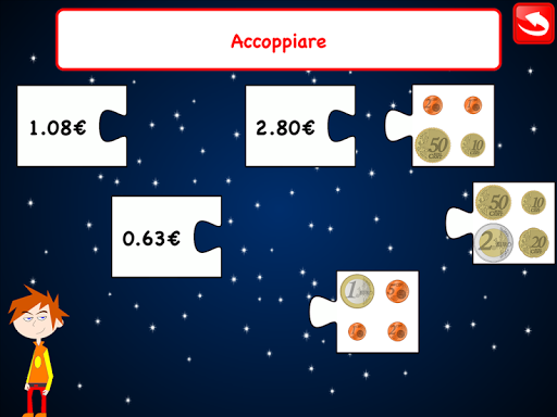 Con questa applicazione, i vostri bambini imparano a individuare, confrontare e risolvere i problemi di matematica con le monete.