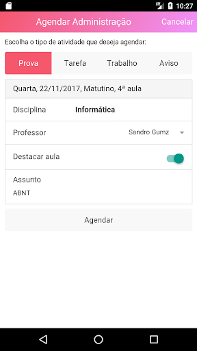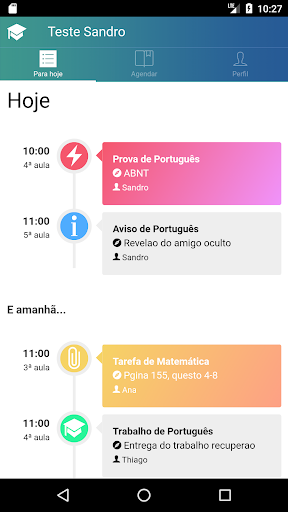 Alunos: Conectem-se à sua escola com Agenda1 e não esqueça mais Provas, Tarefas, Trabalhos e Avisos. Tenha na palma da sua mão seu cronograma diário de disciplinas.