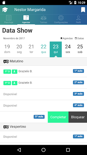- turmas: selecione algumas turmas da escola ou crie novas no inferior do app;