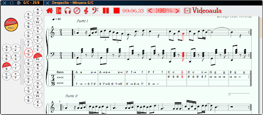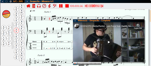 Para transformar o projeto em uma ferramenta de aprendizagem, adotamos uma biblioteca gratuita que permite editar partituras no formato ABC (abcjs) diretamente no navegador. A biblioteca foi estendida para incluir uma ferramenta de transposição de tons e principalmente expandimos a notação ABC (non standard) para incluir uma sintaxe para a produção de tablaturas para acordeões, fundindo o modelo ABC com os mapas de acordeão apresentados aqui.
