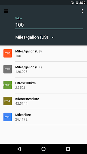 5. Fuel Consumption – Litres/100km, Kilometres/litre, Miles/litre, etc;