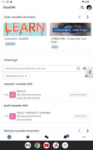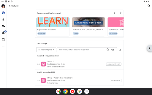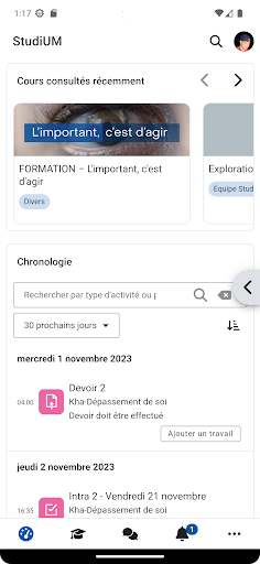 Siamo felici di presentarti Mobile Studium.Questa applicazione si collega alle piattaforme di apprendimento online Studium e Studium FC de l'Université de Montréal e ti offre un accesso immediato a molte funzionalità.