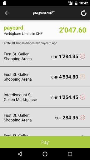 - Damit Sie immer vollen Überblick über Ihre Ausgaben haben, steht Ihnen in der App jederzeit eine detaillierte Übersicht über Ihre Transaktionen zur Verfügung. Zusätzlich erhalten Sie monatlich Ihre übersichtliche paycard-Abrechnung mit all Ihren Einkäufen.