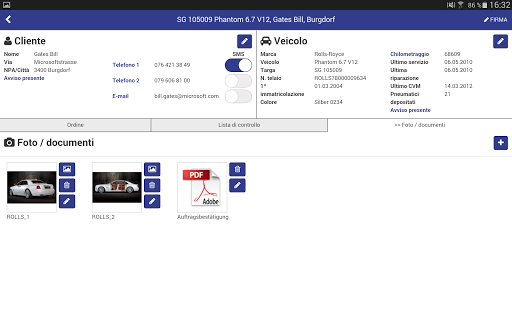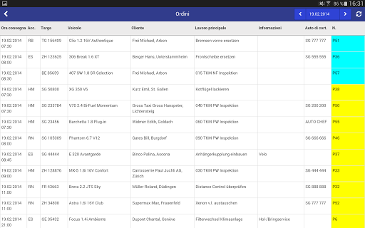 - Acquisizione dei dati relativi a clienti, vetture e ordini da DMS Stieger e dal software di pianificazione officina tramite WLAN