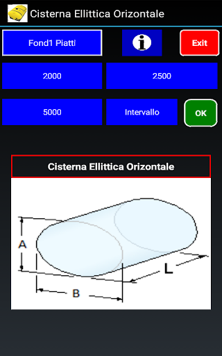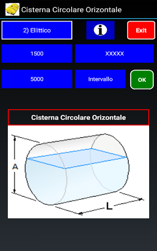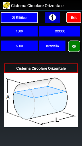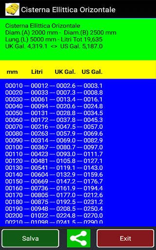 Calcola il volume e crea una tabella. per Cisterne orizzontali, Circolari & Ellittiche.