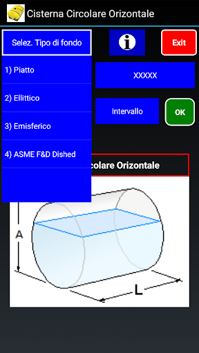 Per le cisterne circolari è possibile selezionare il tipo di disegno dei fondi laterali. (Piatto, Ellittico, Emisferico, ASME F&D Dished.)