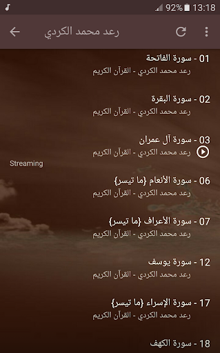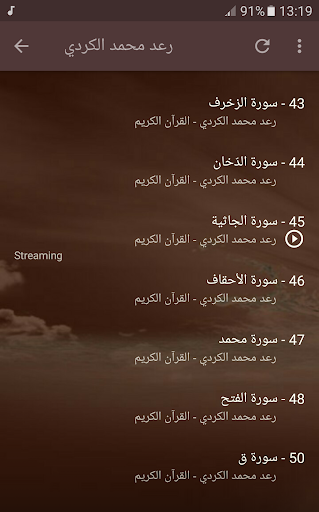 ◾️ القرآن الكريم بصوت الشيخ محمد رعد الكردي تطبيق رائع جداً يحتوي هذا التطبيق على تلاوات القرآن بصوت جميل للقارئ محمد رعد الكردي.