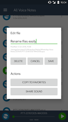 Sound Explorer is a very simple and intuitive application for organizing WhatsApp sound messages. Add most used messages to the Favorites and never lose your sound messages again!