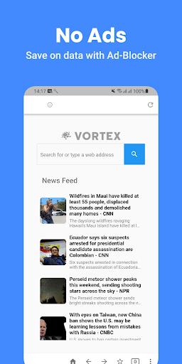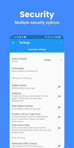 Il browser Vortex è un browser Web sicuro e incentrato sulla privacy fornito con funzionalità VPN integrate.Ti consente di sfogliare Internet in modo anonimo e sicuro, senza il rischio che le tue attività online vengano monitorate o compromesse.L'app è attualmente in fase di sviluppo, con una versione alfa disponibile per i primi utenti per testare e fornire feedback.Con la sua interfaccia intuitiva e funzionalità di sicurezza avanzate, il browser Vortex è la scelta perfetta per coloro che apprezzano la loro privacy e sicurezza online.Provalo oggi e prova la massima esperienza di navigazione.