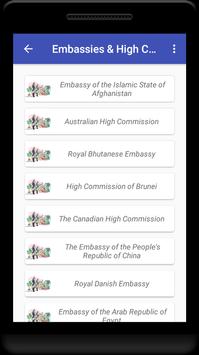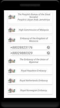* Emergency contacts with embassy and high comissions in dhaka.