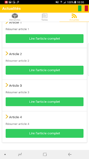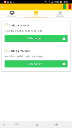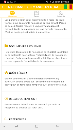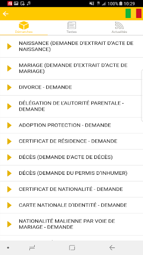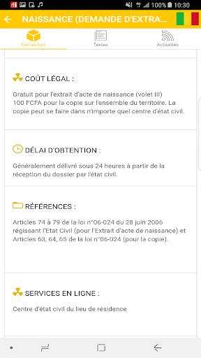 Questa applicazione consente di accedere all'elenco di tutte le procedure amministrative di Mali, nonché leggi, codici e decreti.