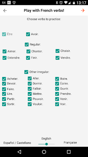 • Imparare, giocare, pratica e coniugare i tempi dei verbi francesi regolari e irregolari.