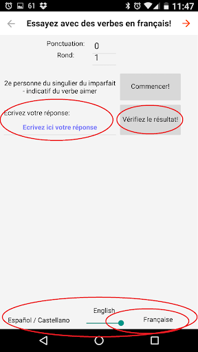 • Attenzione agli accenti !!!: Ricordati A scuola / college (in primario e secondario), se non scrivi gli accenti, la risposta può essere impostata come "BAD": questa app non è utile solo per imparare i tempi dei verbi francesi, ma è anche utile imparare a imparare Scrivi con accenti (ci si abitui molto rapidamente, perché se non metti l'accento, l'app non ti darà la risposta valida!).