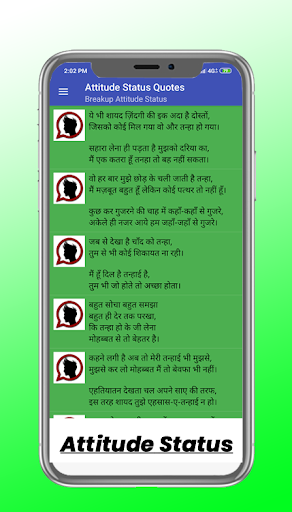 Download all New Attitude Status App and Get All Type of Attitude Status in Hindi & English Language. This is Dynamic App and We will Update Status in Daily basic.