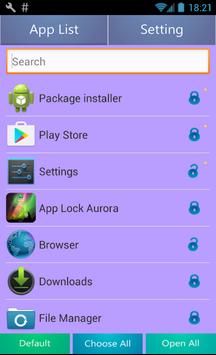 How to use App Lock Aurora: just choose applocker Service from setting and set a passcode or you can change a type of lock to Pattern from setting also, then you can Check the app you want to lock it from Applist.