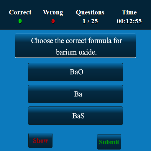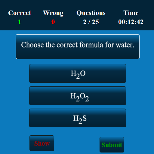 Questa app di formula chimica è stata sviluppata per testare le tue abilità di formula di chimica.Questa app ha più di 10.000 domande e risposte a scelta multipla.Questa app Chimica Formula Quiz si adatta a tutti i livelli più bassi, intermedi e superiori.Le domande a tutti i livelli verranno visualizzate in modo casuale.L'utente può migliorare la conoscenza della formula di chimica e l'utente può segnare bene nei requisiti di scuola superiore, universitario e di livello competitivo.Questa è una versione gratuita e puoi essere utilizzato sia in Offline che online.