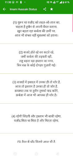 Andiamo a fare questo IMam Hussain Status Hindi App. App Apke Liye Bahut Utile Hone Wali Hai è l'app Ko Hamne Povera Hindi Me Banaya Hai Aap Hindi Me è app ko asani se pad sakte ho, imam hussain status app miglior app dekhne ko Mile to aap Hamse Problema Condividi kar sakte ho.