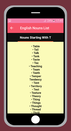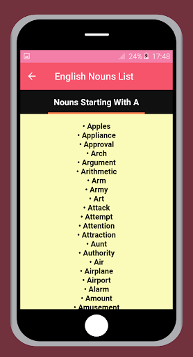 Imparare i nomi inglesi elenca un'applicazione meravigliosa per imparare tutti i nomi in lingua inglese e grammatica inglese L'app è inclusa