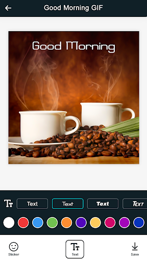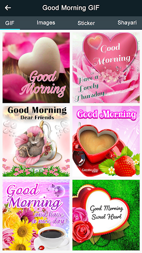Buongiorno immagini animate è un'applicazione che può essere utilizzata per salutare i auguri di buongiorno e le carte del buongiorno ai tuoi cari. Nuovi auguri di buongiorno gif è stato creato per offrirti un modo bellissimo per augurare buongiorno ai tuoi amici e familiari.