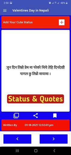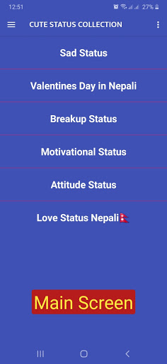 Questa app su: Best Nepali Cute Status & Quotes Raccolta app, qui nuovo Atteggiamento, scherzo, triste, rottura, da solo, piangere, felice, modalità disattivato, Harami, sfortuna, stato motivazionale e citazioni.