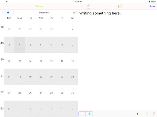 Calendario e Diario vengono visualizzati insieme, puoi facilmente scrivere questioni di diario.