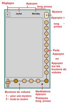 * Appuyez sur la perle ou appuyez sur les boutons de volume. * Couleur de fond. * Taille de la police. * Meditations. * Images. * Sans publicité.