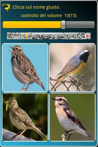 Di 33 diversi uccelli canori deve essere riconosciuta in ogni round 10 °. Sono tutti soggetti al caso oscines riconosciuta, si ottiene 100 punti, e ascolta il canto degli uccelli dell'ultimo correttamente scelto uccello