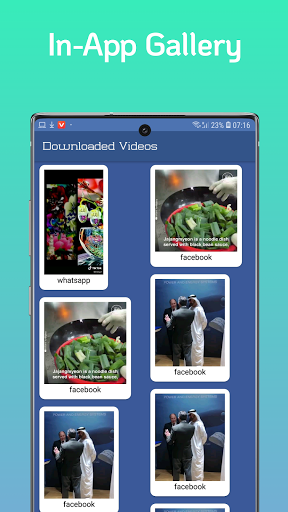 Questo video Downloader di Facebook consente di navigare sul tuo account Facebook utilizzando un motore di ricerca incorporato sicuro che protegge la tua privacy e ti consente di cercare tra i video che si desidera scaricare sul dispositivo in modo da poter guardare o ripugnarli più avanti da la tua galleria in-app o telefono con la tua famiglia e gli amici tramite applicazione diversa.