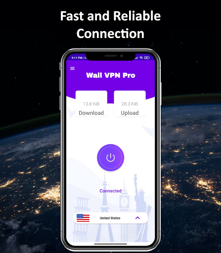 Wall VPN Pro is a lightning-fast app provide free VPN service. Not need any configuration, just simply click one button, you can access the Internet securely and anonymously.