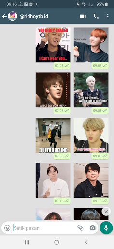 Sei un amante BTS Bangtan Boys? Che cosa stai aspettando, usi immediatamente adesivi carini emoji da Pack Siker WA BTS BANGTAN Boys WaStickerapps per inviare e condividere messaggi adesivi ai tuoi amici e familiari sotto forma di emoji, passare ora da SMS / MMS a WhatsApp Adesivo. Adesivi WhatsApp sono usati per distribuire immagini espressive che sono meme belle, divertenti, fresche, interessanti, carine, divertenti.