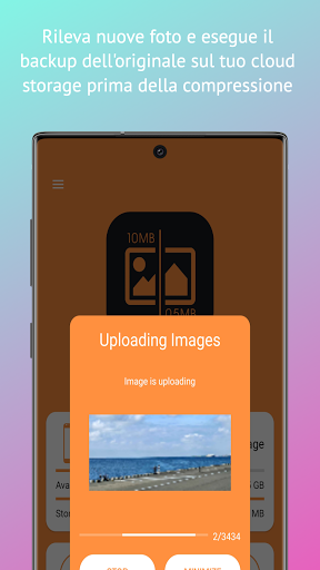 Auto Photo Compress rileverà automaticamente le tue nuove foto non ancora compresse ed eseguirà il backup delle foto originali ad alta risoluzione sulla tua memoria cloud prima della compressione senza ostacolare la tua esperienza utente.
