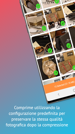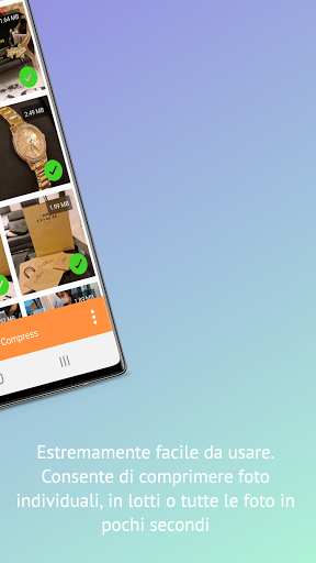 Auto Photo Compress è un'app ideale per l'utente che ha problemi di memoria limitata del telefono, o per coloro che condividono o caricano spesso foto come influencer di social media, proprietari di siti web, blogger, venditori online, designer, artisti, viaggiatori, agenti immobiliari, hobbisti o semplicemente per mamme che documentano ogni istante del loro bambino. La nostra interfaccia user friendly ti potrebbe aiutare a liberare spazio di archiviazione del telefono senza compromettere la qualità delle foto.