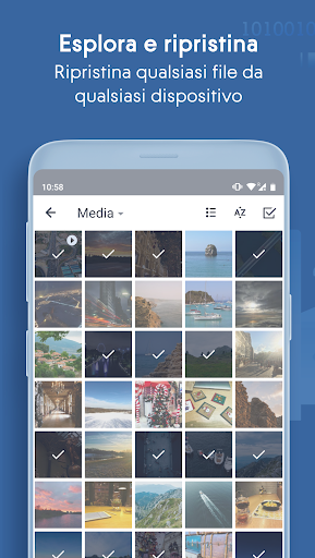 Ripristino sullo stesso dispositivo, su un dispositivo da cui sono stati cancellati i dati o su uno nuovo di zecca, passando facilmente da Android a iOS e viceversa.