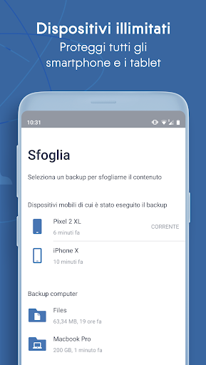 ✔️ Accesso ai file del backup per ripristinare i dati sia dal dispositivo in uso che da altri dispositivi mobile