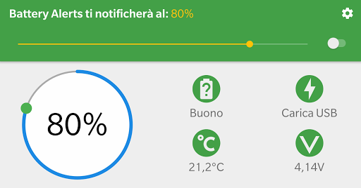 Battery Alerts ti permette di impostare un livello di carica che, una volta raggiunto, farà scattare una notifica.