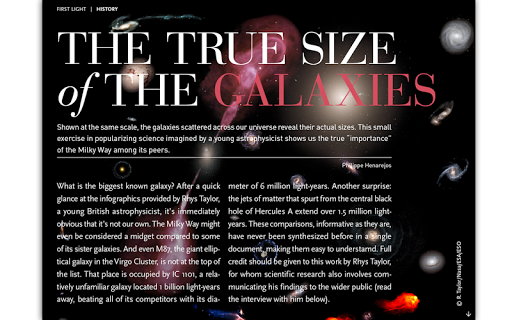 con la prima rivista leggera, imparerai della ricerca all'avanguardia in Astronomia, incontrare i migliori scienziati, visitare luoghi incredibili dove sono state fatte scoperte, scegli saggiamente i tuoi strumenti astronomici.