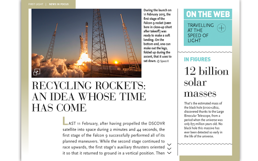 Con la prima rivista leggera, puoi interagire con la maggior parte delle nostre pagine: animate immagini, guardare video, migliorare le informazioni visualizzate -, tutto con un semplice tocco di un dito